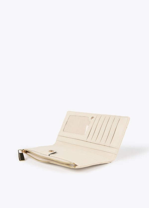 Billetero grande con logotipo troquelado. Cierre con cremallera en monedero y cierre con botón clic en zona tarjetero.