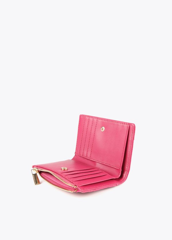 Billetero pequeño con logotipo troquelado. Cierre con cremallera en monedero y cierre con botón clic en zona tarjetero.