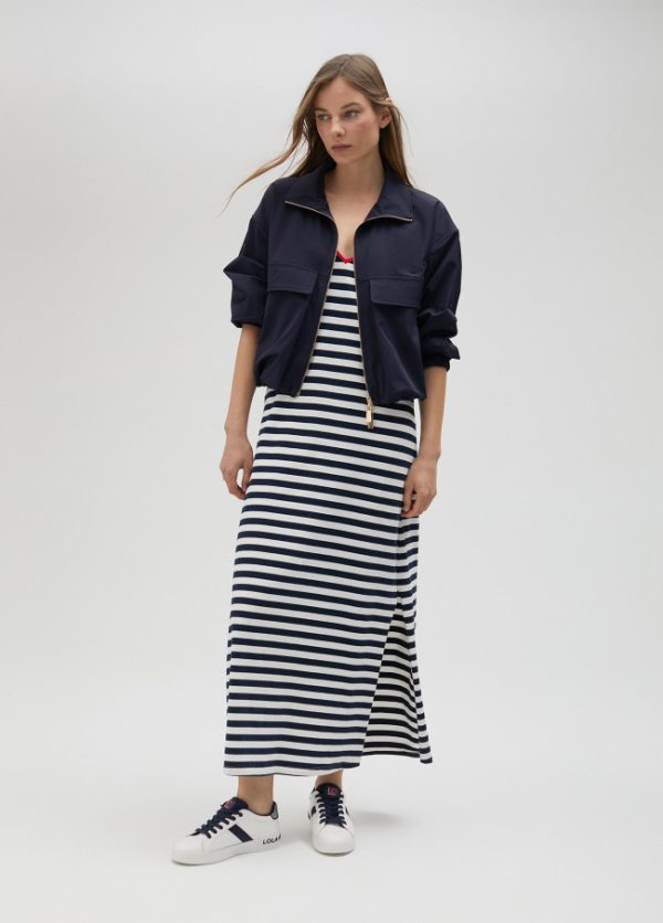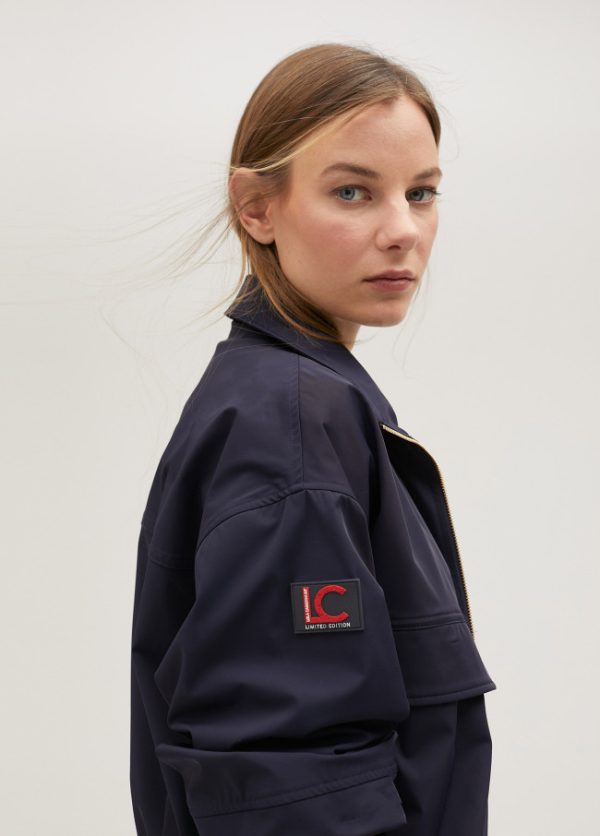 Cazadora bomber técnica de edición limitada en colaboración con American Magic. Cuello solapa y manga larga acabada en puño fruncido. Bolsillos estilo plastrón en bajo frontal con solapa. Cierre frontal con cremallera y detalle de logo lateral en silicona.
