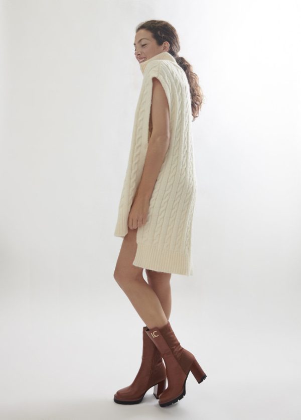 Botín marrón con suela tipo track y caña media. Efecto piel en parte delantera y neopreno en parte trasera. Logo dorado en lateral y cierre con cremallera.