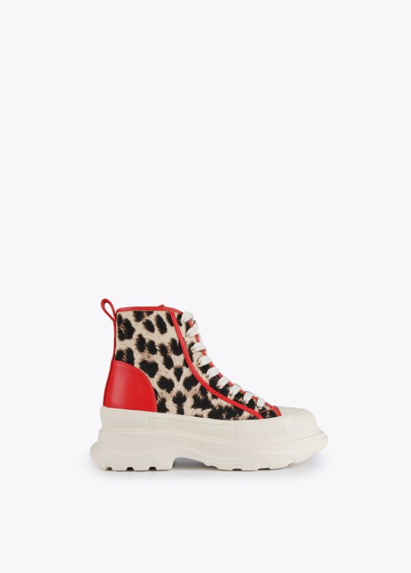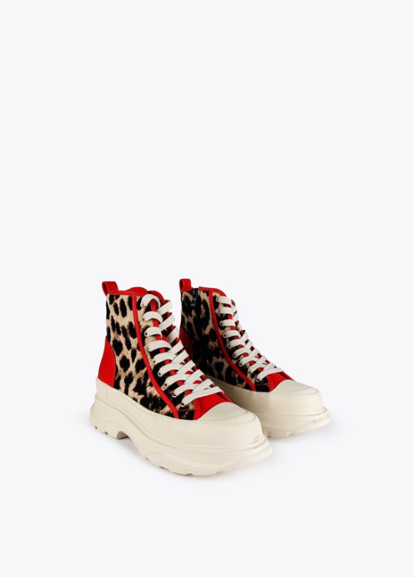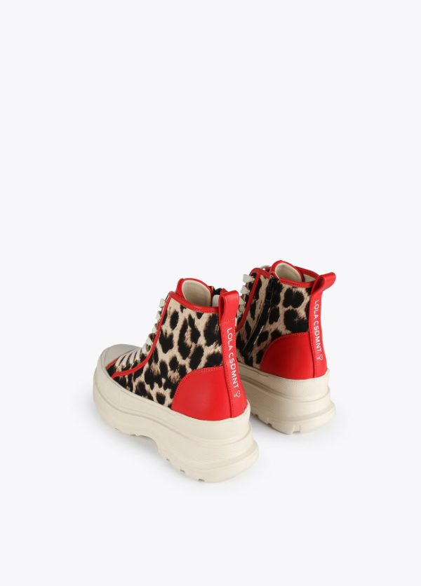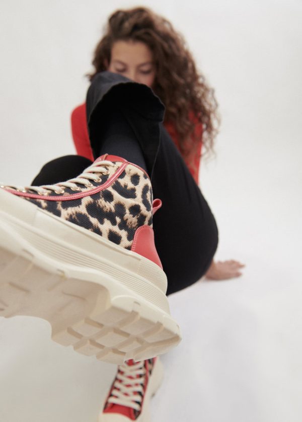 Botín de plataforma con estampado animal y detalles contraste en efecto piel. Logotipo en lengüeta trasera.