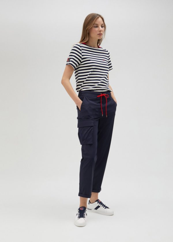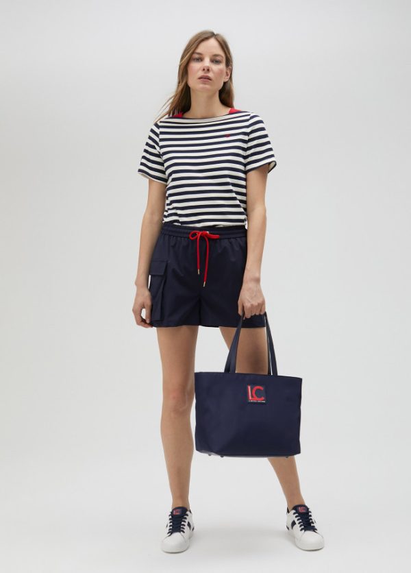 Camiseta en rayas bicolor confeccionada en hilatura de algodón 100%.Escote redondo y manga corta. Hombros combinados a contraste. Detalle de logo bordado en delantero y silicona en lateral. Edición limitada en colaboración con American Magic.