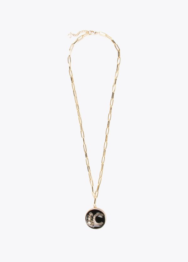 Collar dorado con eslabones y medalla colgante con logo animal. Cierre ajustable.