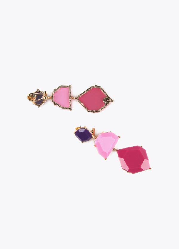 Pendientes con piedras de colores, distintas formas geométricas y engarce dorado.