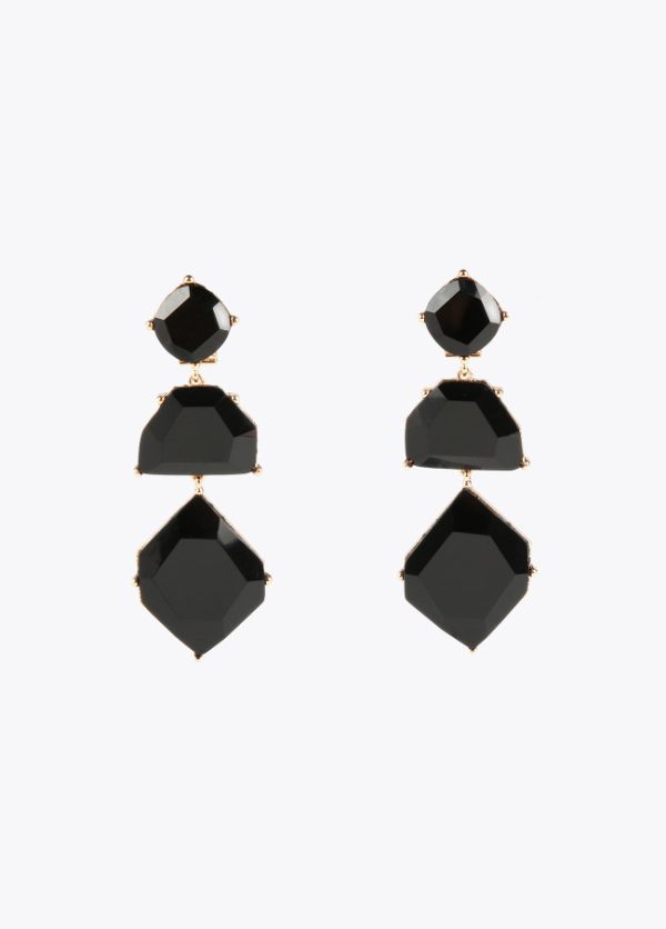 Pendientes con piedras de colores, distintas formas geométricas y engarce dorado.