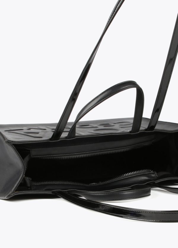 Bolso tipo shopper con mega logo en relieve en parte frontal. Asas de mano, asa bandolera y cierre de cremallera.
