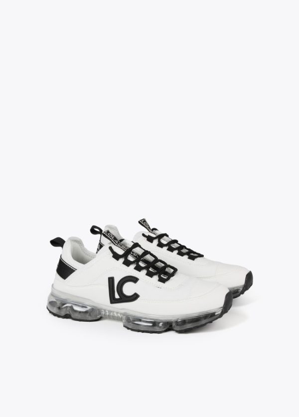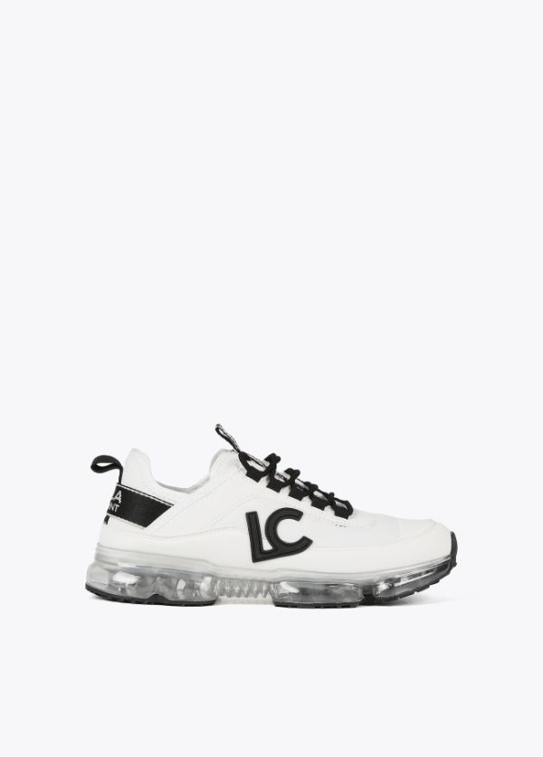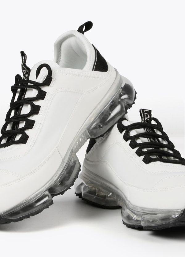 Zapatilla deportiva bicolor en nylon con suela transparente. Cordones y detalles a contraste.